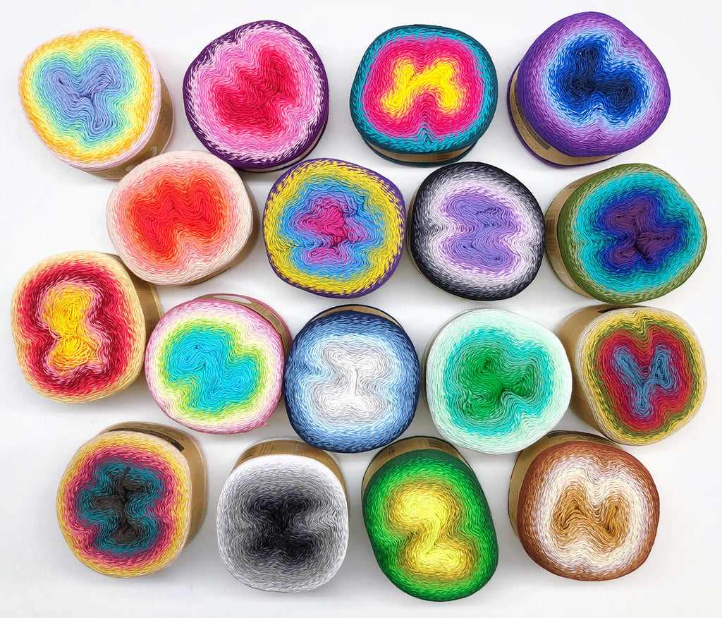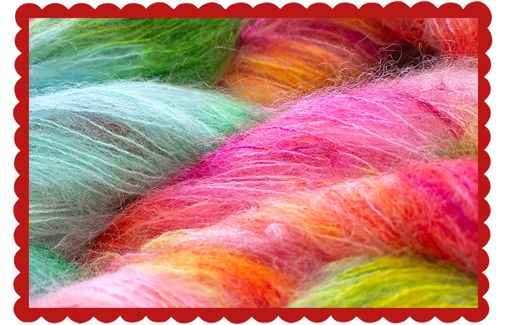 Designed & hand dyed by myself and my team in my studio in Betchworth, we now have a fabulous range of 'Holy Fluff' hand dyed yarn, in a number of different yarn weights and colour combos - growing in number by the week! Did you know all our Holy Fluff hand dyed yarns are named with song titles that reflect their colourful vibe!?