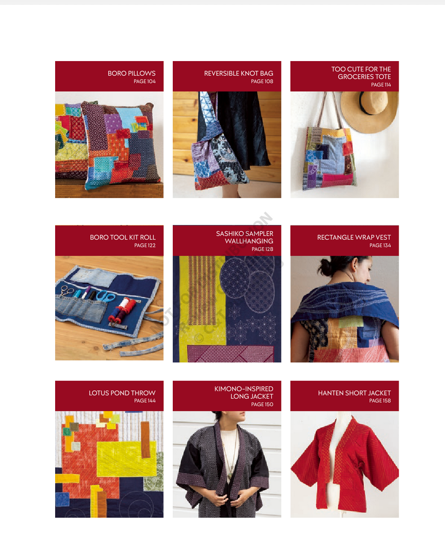 This guide includes nine contemporary projects including a cushion, wallhanging, tote, and kimono jacket. There is also a stitch directory which is great! If you're into top stitching and visible mending - this book is a must :-) x