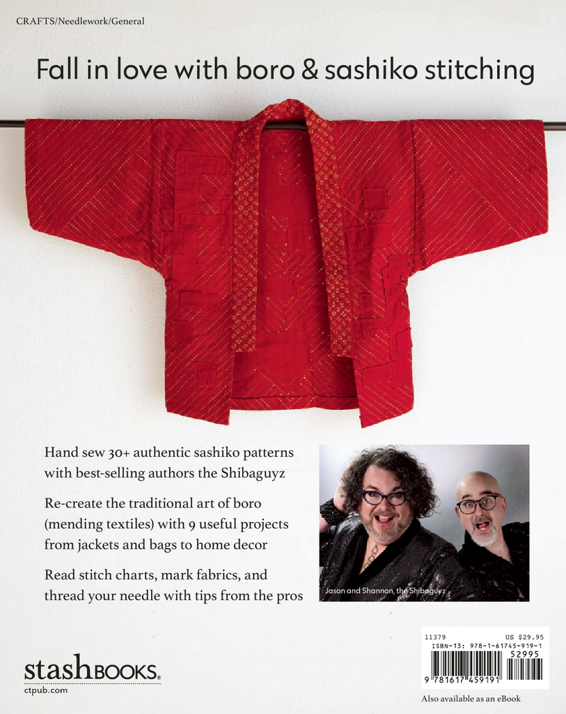 What a super book! Authors Shannon and Jason Mullett-Bowlsby (a.k.a The Shibaguyz) teach 30+ Sashiko and Boro designs, in the traditional Japanese style.