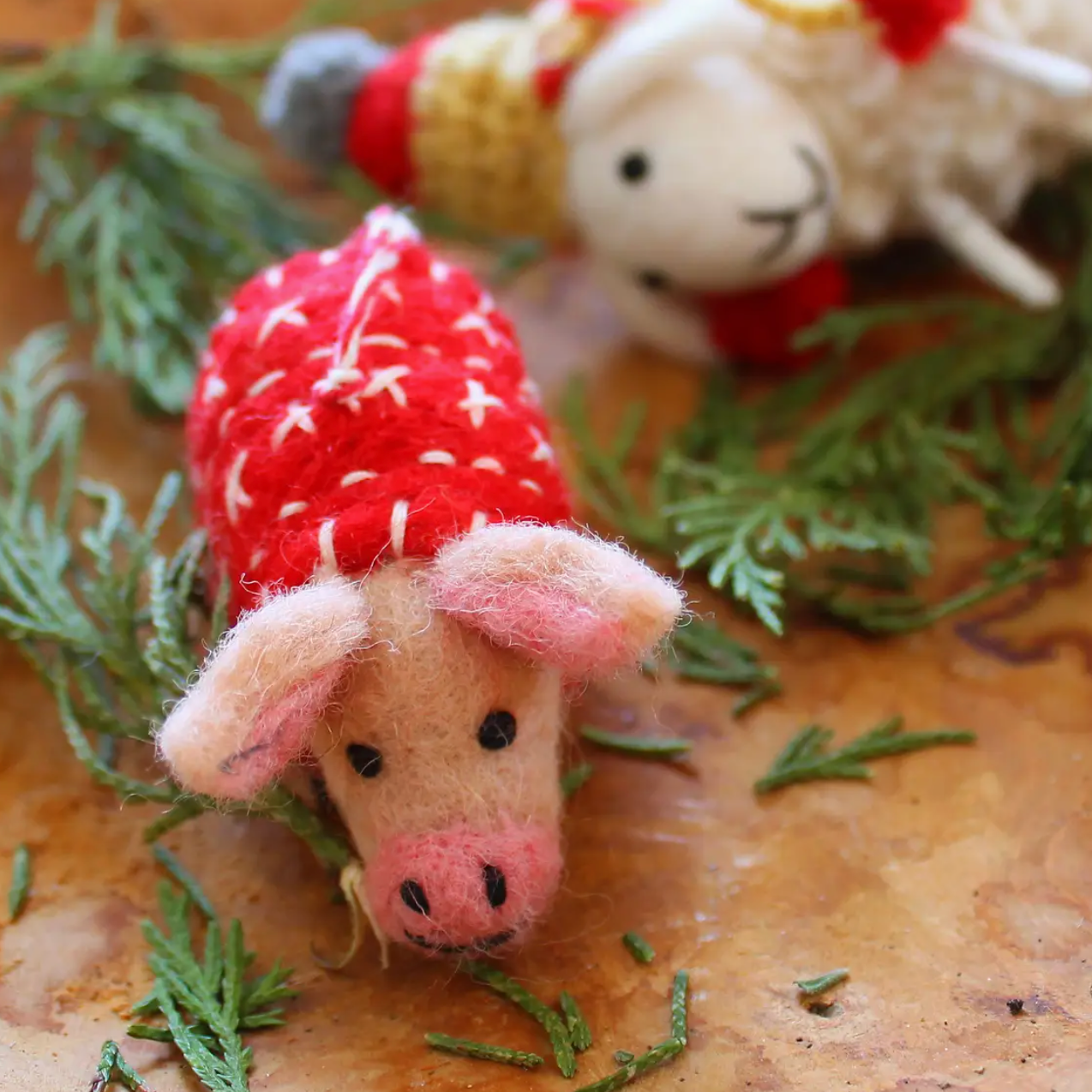 Pig in Blanket : Handmade Biodegradable Felt Hanging Decoration