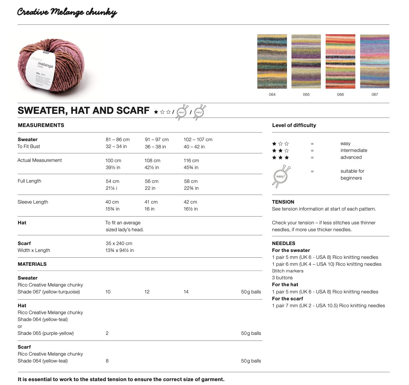 Creative Melange Chunky Knitting Pattern 1051 : Sweater Hat and Scarf