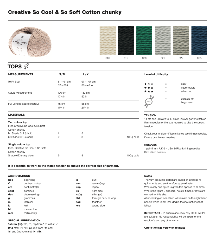 Very of the minute shaping - these casual loose fitting tops are perfect either on their own or over another top or shirt. Casual and draping with a fab dropped shoulder look. I think this is a really great (and straightforward) pattern - which Rico say is level "Easy" and suitable for beginners.