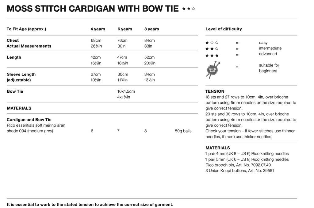 Very cute Rico Kids 7+ Jacket Knitting Pattern.