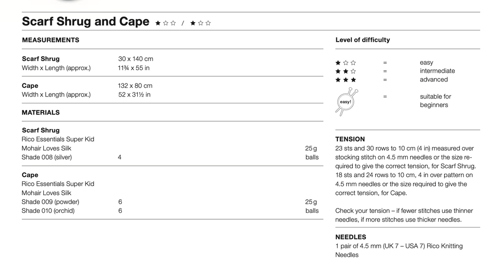 Super Kid Mohair Pattern : 550 Shrug / Cape