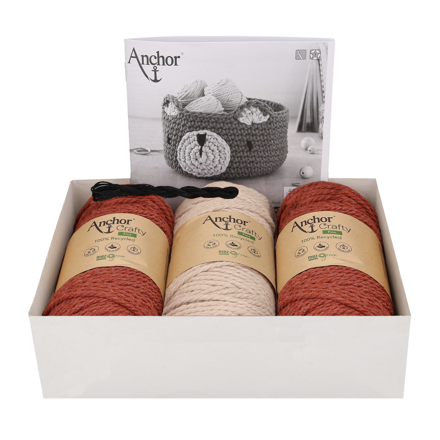 This kit boasts 3 x 250g balls of Anchor Crafty Fine, eco-friendly recycled crochet yarn, 3.5m of black embroidery thread, and easy-to-follow instructions in 9 languages. Stitch your way to a finished basket measuring 14 x 24cm – an easy, stylish project to adorn every space! 🌈👜