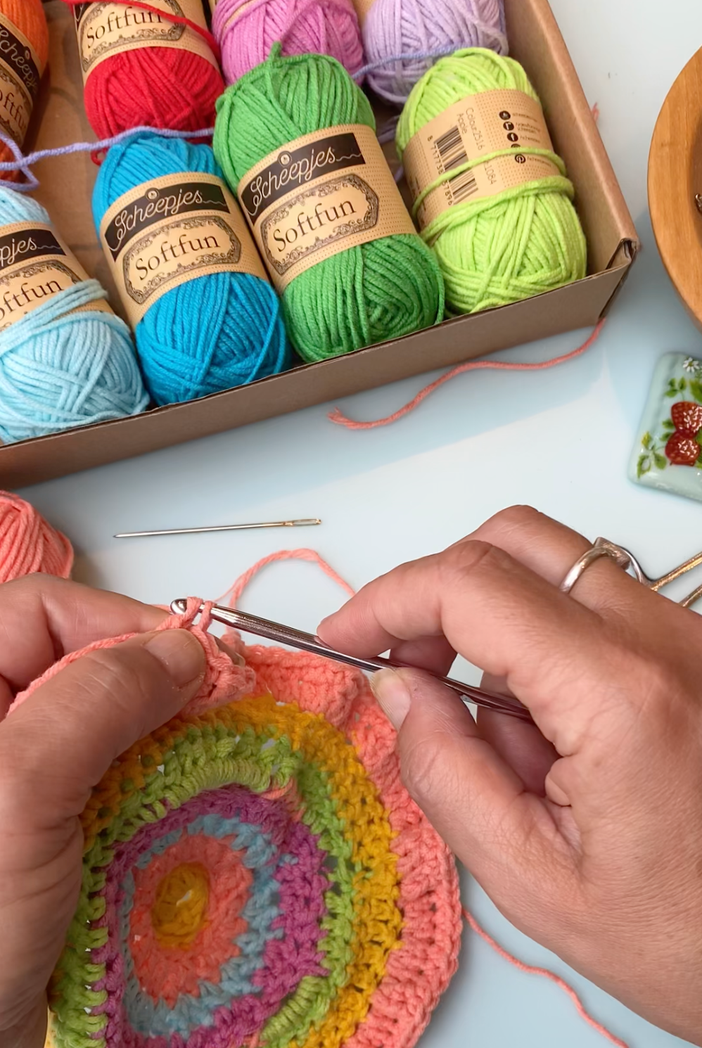 Great for multi-coloured or colour work projects like granny squares, patchwork squares; striped blankets or cushions, mandala's, amigurumi and small accessories like hats or scarves, plus garments too!