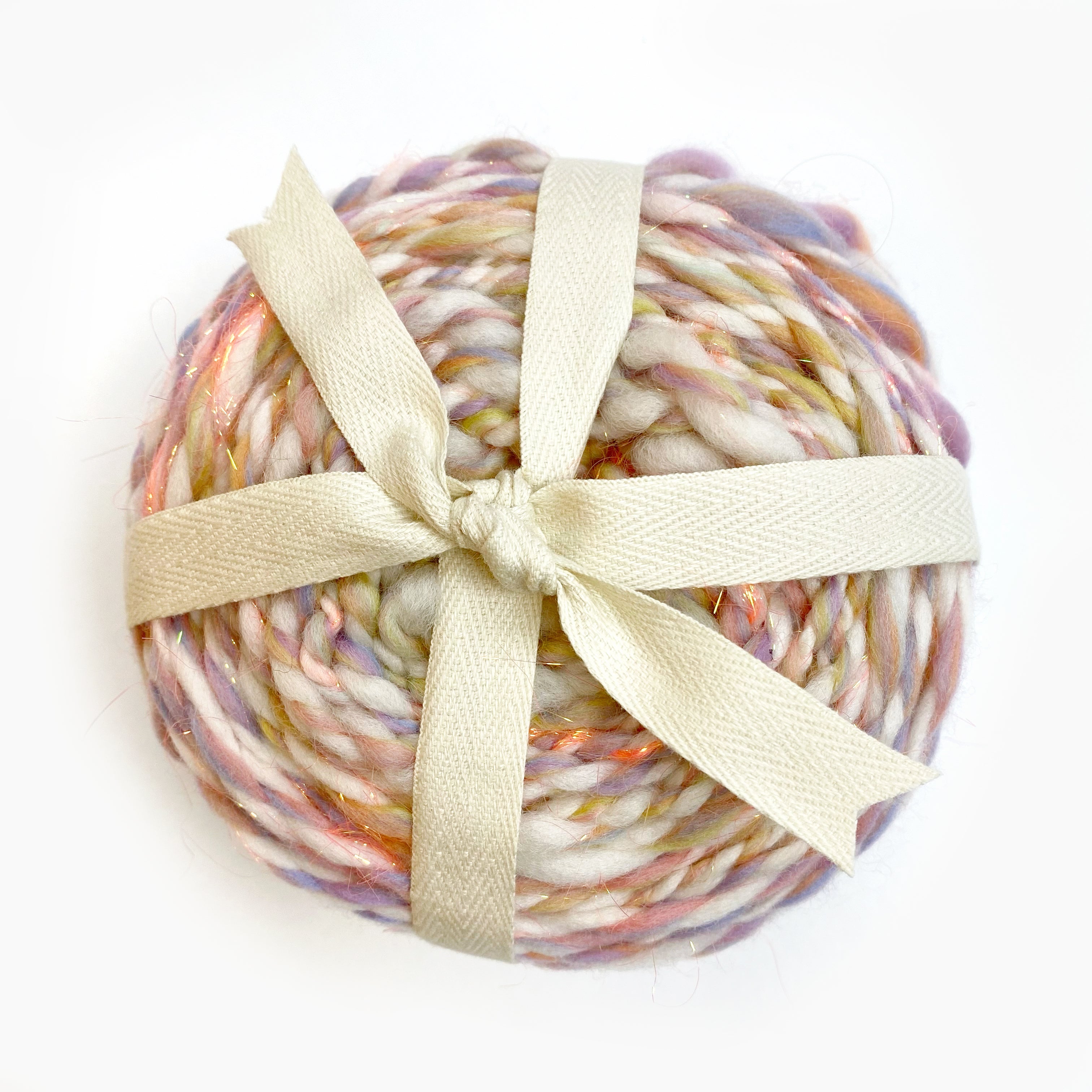 A beautiful hand spun thick and thin art yarn - suitable for knitting or crochet - ideal for a cushion front, a winter hat or mittens, or as an accent yarn on cuffs or ribbing - or indeed for weaving or lampshade making, tassel making, or adding into other multi media work!