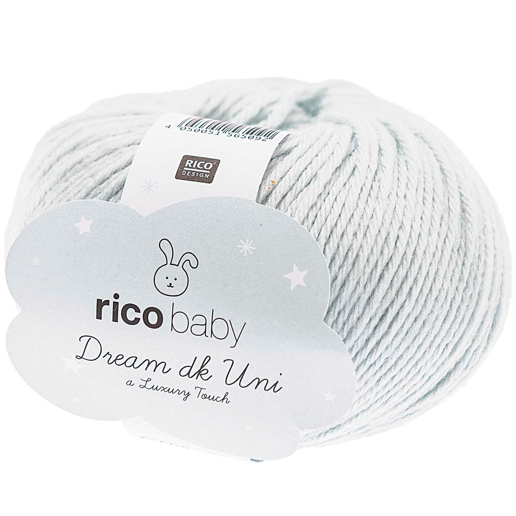 Rico Baby Dream Uni 004 (very pale blue) The softest Baby Yarn ever! Soft colours and 50g ball in a double knit. Machine washable. 122m
