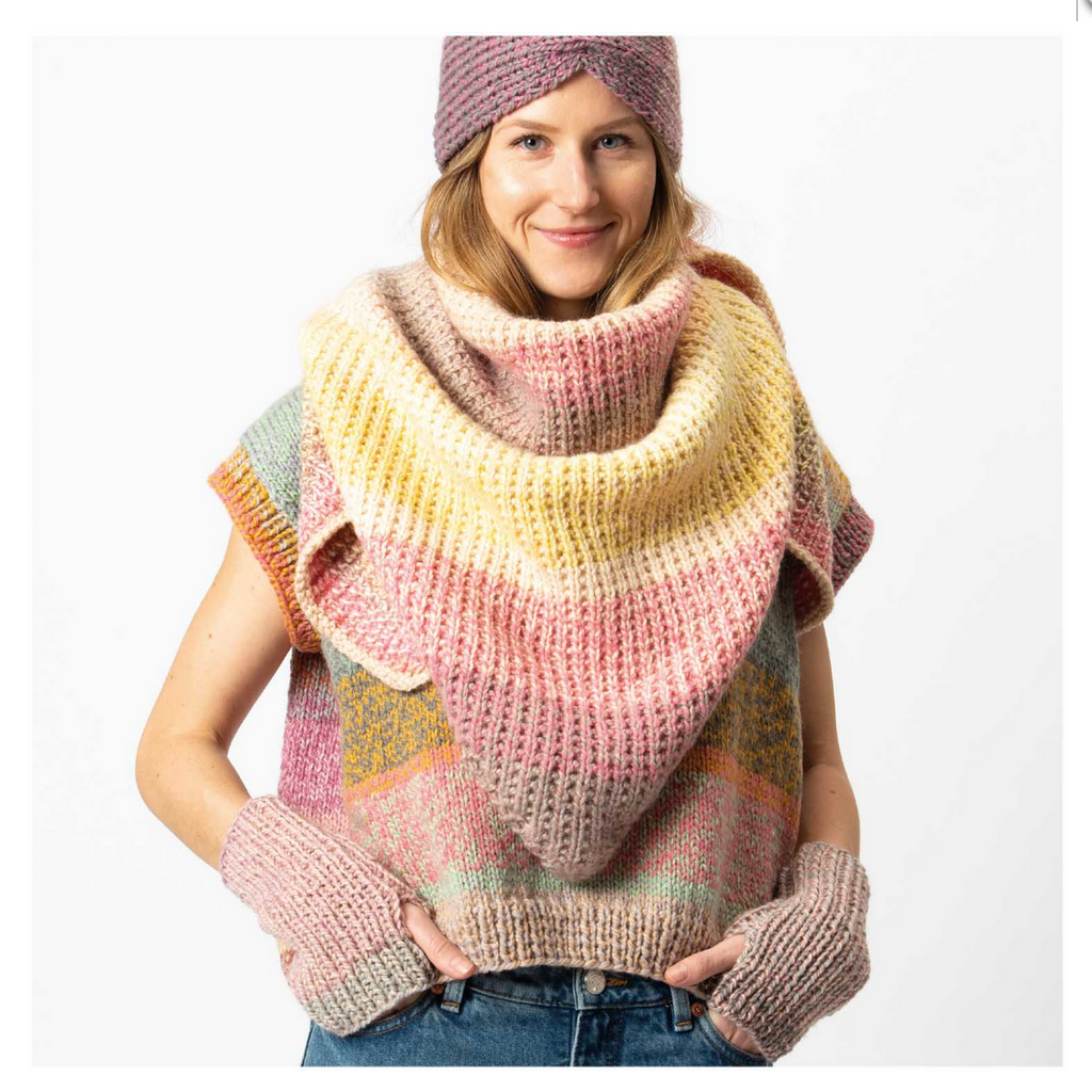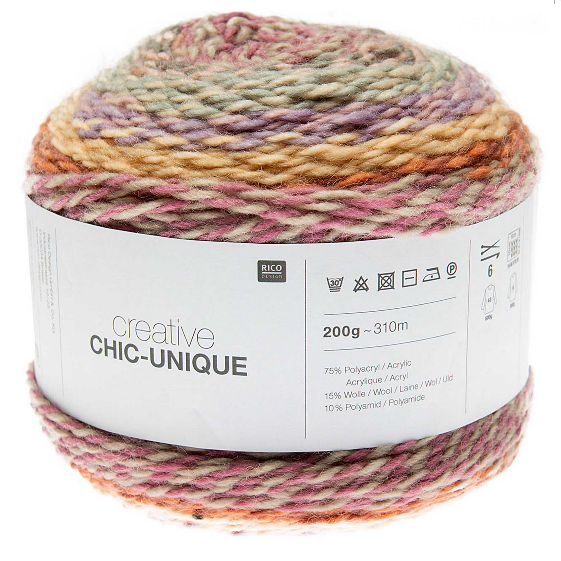 A beautiful, colourful, striping soft yarn by Rico. These giant 200g whirls consist of two threads with different colour gradients, which are combined in order to create an exciting colour mix! As the colour parts have a different length and there will always be different shades which hit each other in the twist. Each ball and each garment knitted from this yarn is therefore totally unique. Woohoooo!