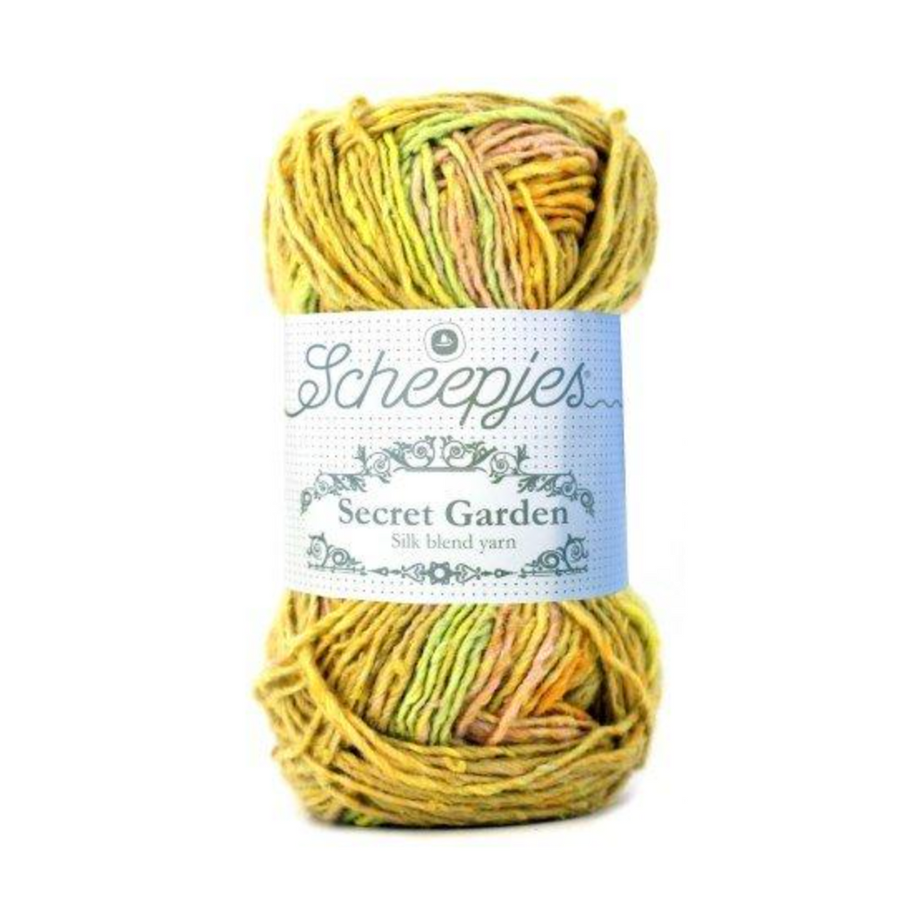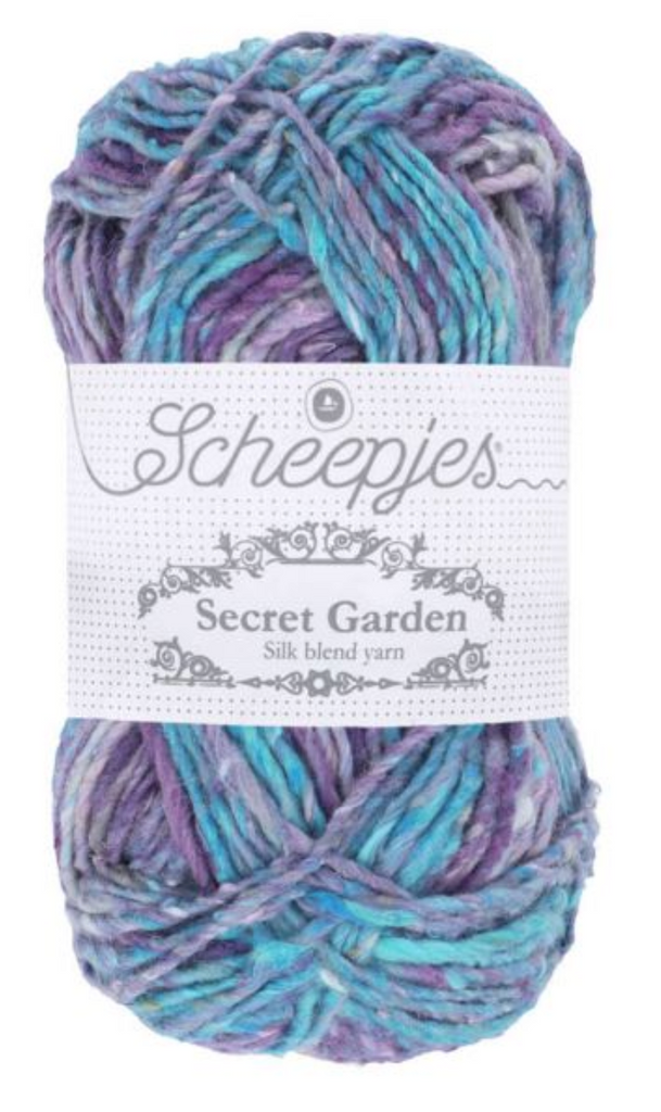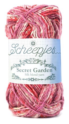 Scheepjes Secret Garden yarn is silky soft; made of 20% silk, 20% cotton and 60% polyester in truly enchanting shades. This yarn's natural fibres create beautiful textures in both crocheting and knitting.