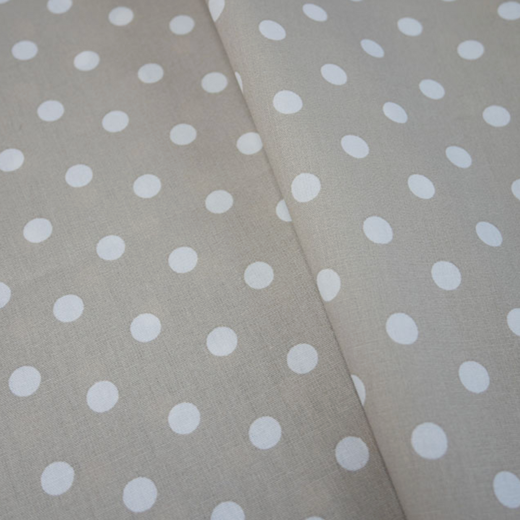 Beige with White Polka Dots 100% Cotton Fabric - by the metre