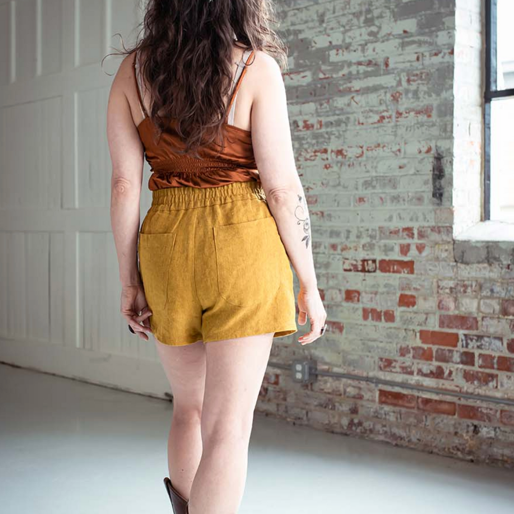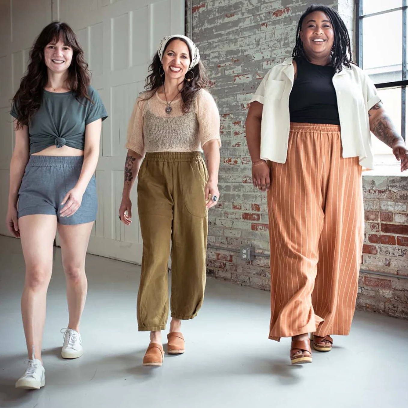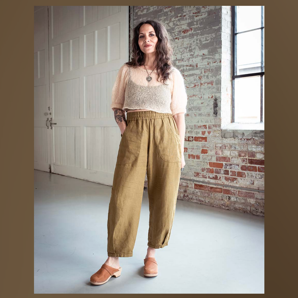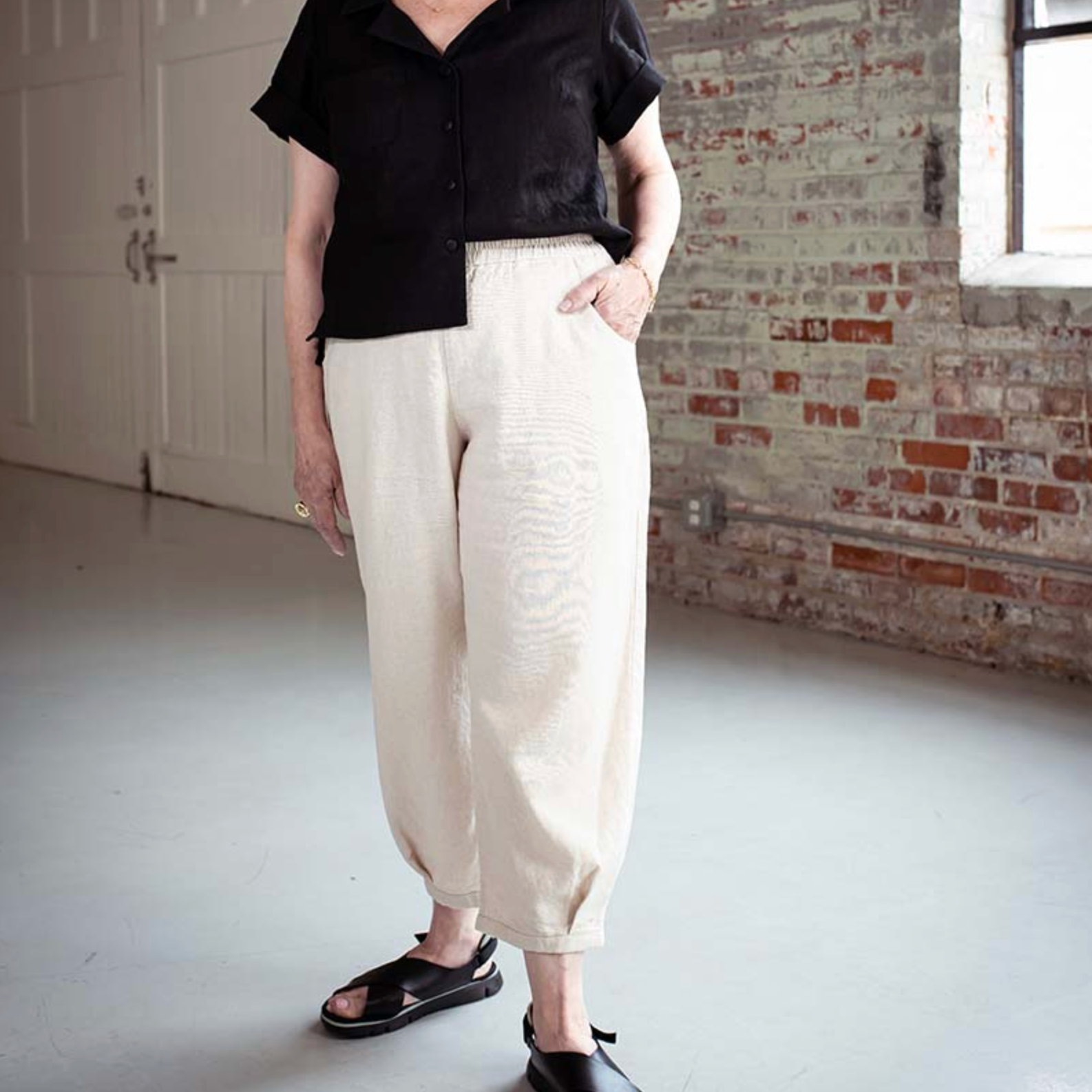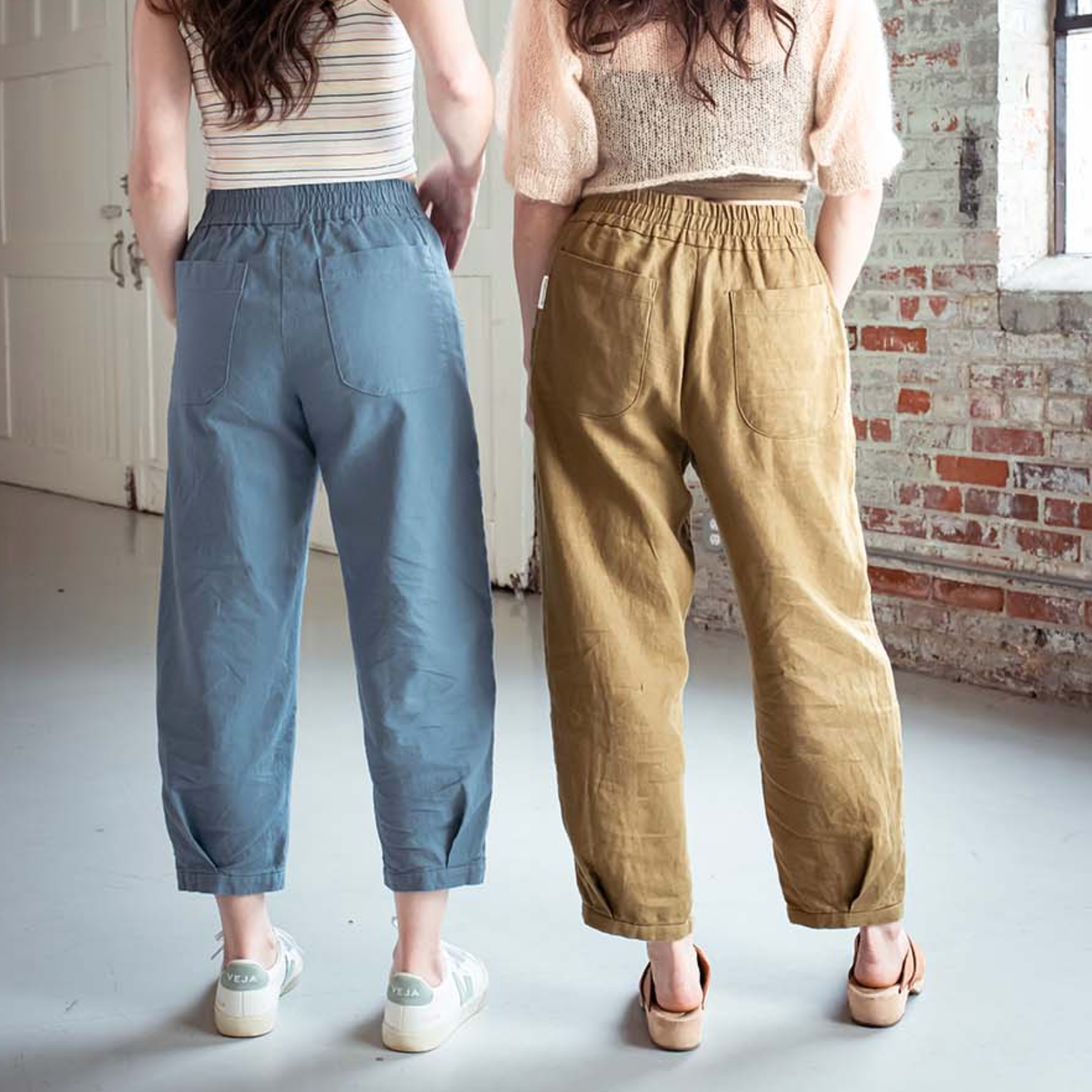 Bring a little ease and a whole lot of fun to your wardrobe with the Chanterelle Pants and Shorts pattern. Featuring a comfortable and easy-to-fit elastic waist, wide leg, barrel leg, and shorts views, Chanterelle will fill any gap in your wardrobe and be an all-seasons piece for years to come.