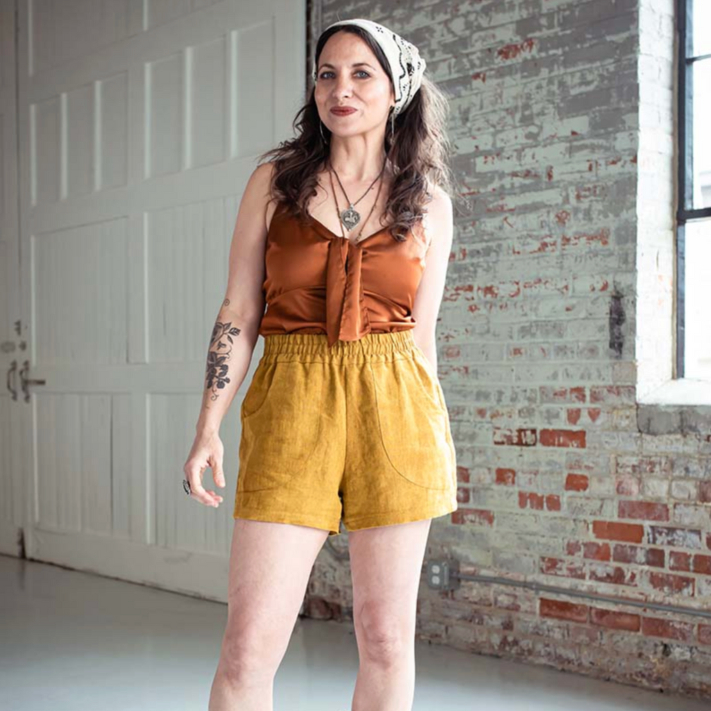 The Chanterelle Pants and Shorts are the casual bottoms that can take a starring role in your wardrobe – dressed up in bright colors and fancy fabrics, casual in lightweight denim, or easy and cozy in soft fabrics.