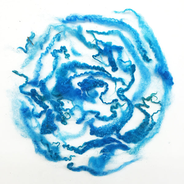 100g of our Curly Wool Locks - for adding in to your spinning or felting. Wonderful little curly locks dyed into a truly magnificent vivid blue!