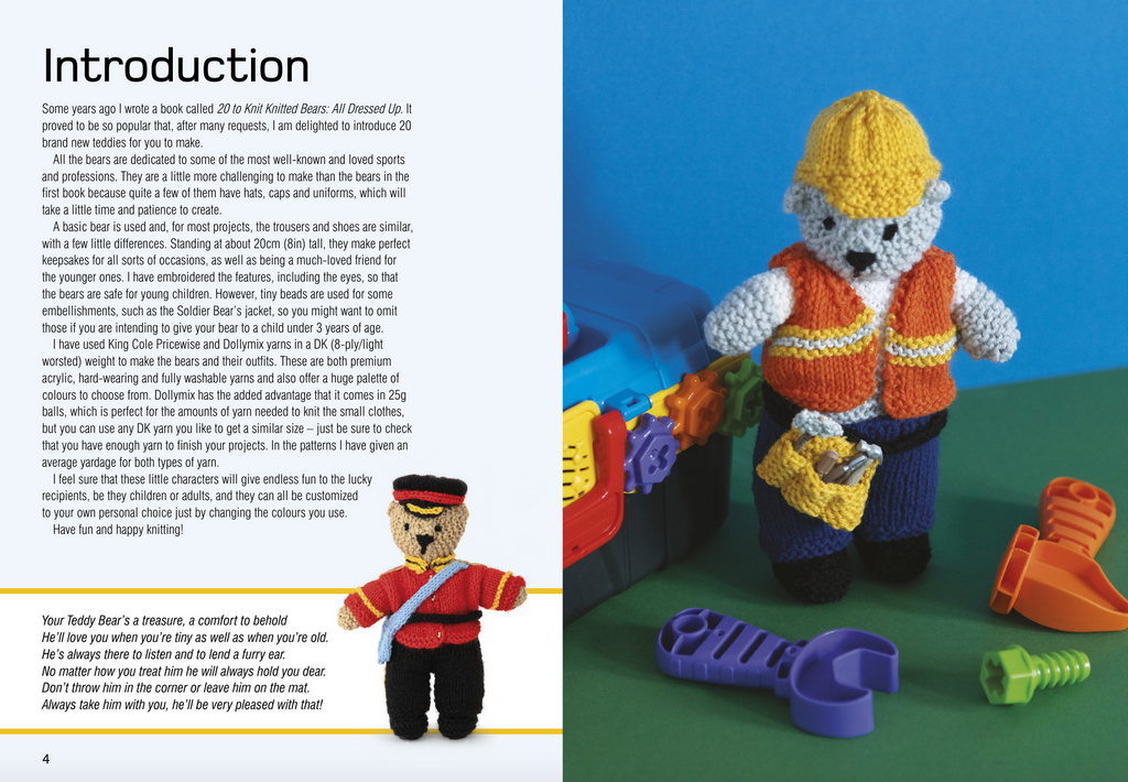 These delightful, characterful bears come with easy-to make outfits, and projects range from a firefighter bear, an astronaut, a judo bear, biker, waitress and policeman! All of the projects are accompanied by a clear, easy-to-follow pattern and fun photography. There's also a page of basic techniques at the start of the book, including making up, stuffing and some simple surface stitching.
