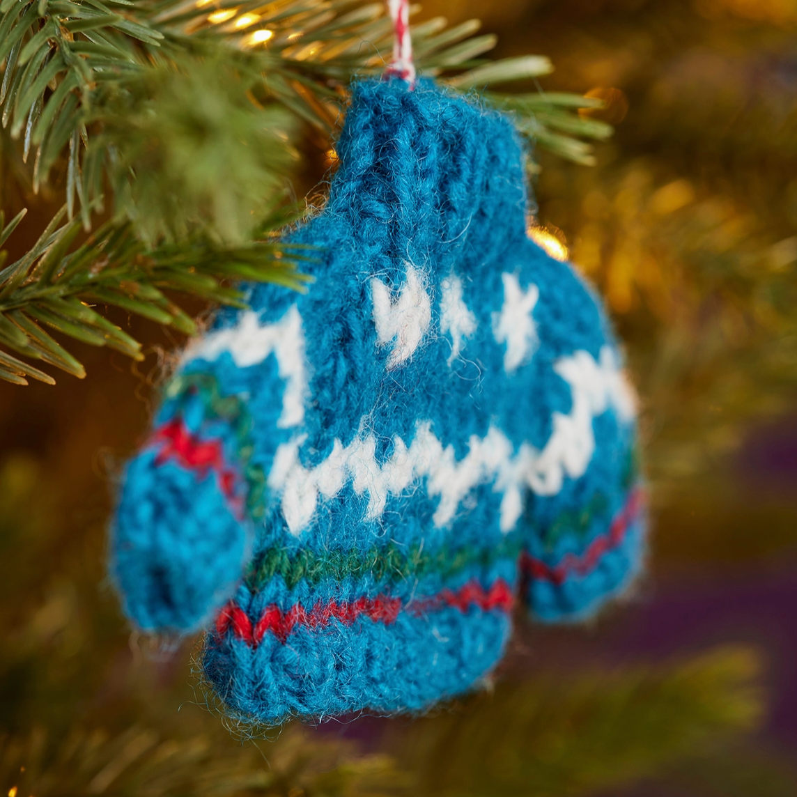Gorgeously charming hand knitted sweater tree decorations beautifully crafted in a traditional Fair Isle pattern. This Christmas tree ornament showcases a blend of tradition and miniature enchantment. Share the festive joy of eco friendly, sustainable Christmas jumpers ready to display with a hanging thread!