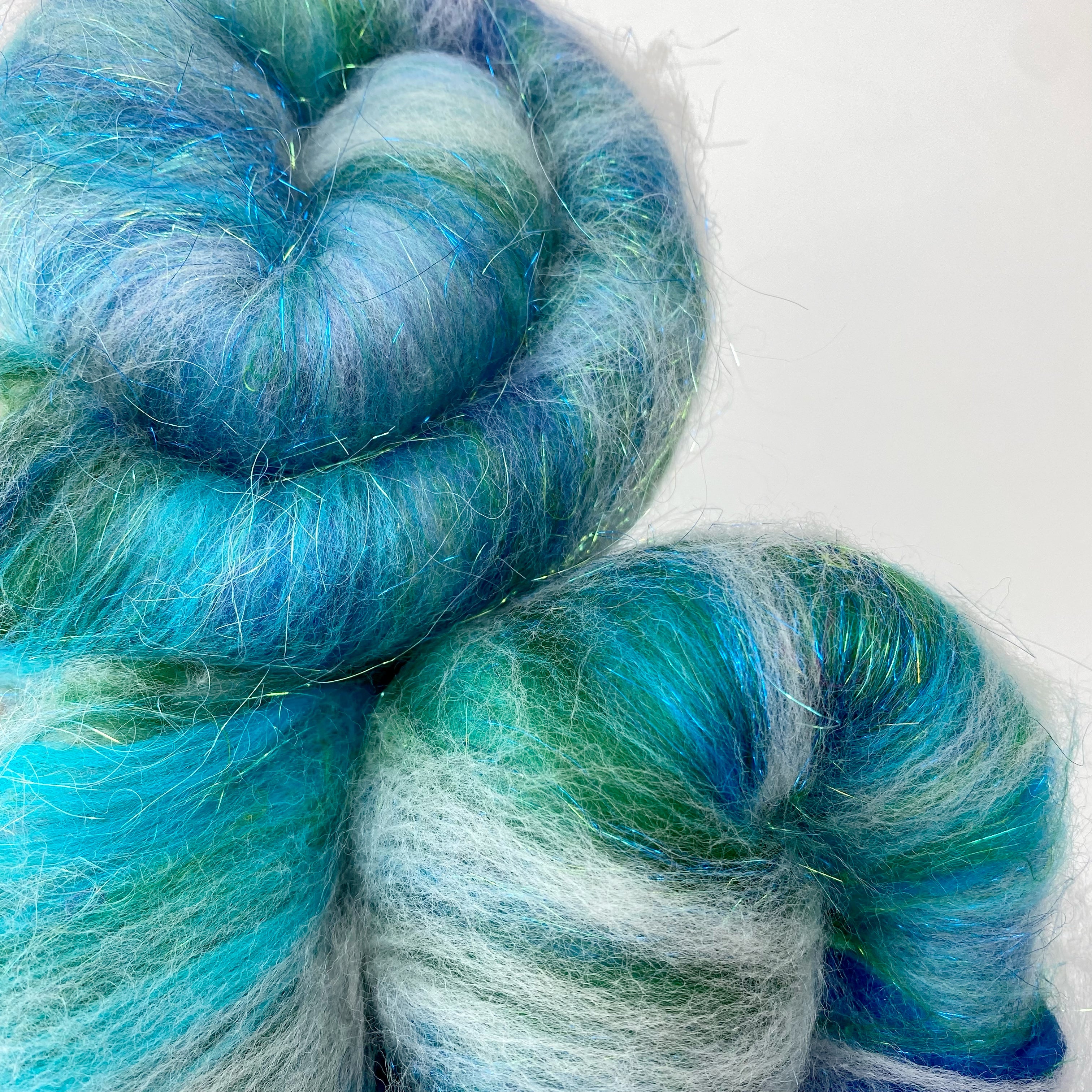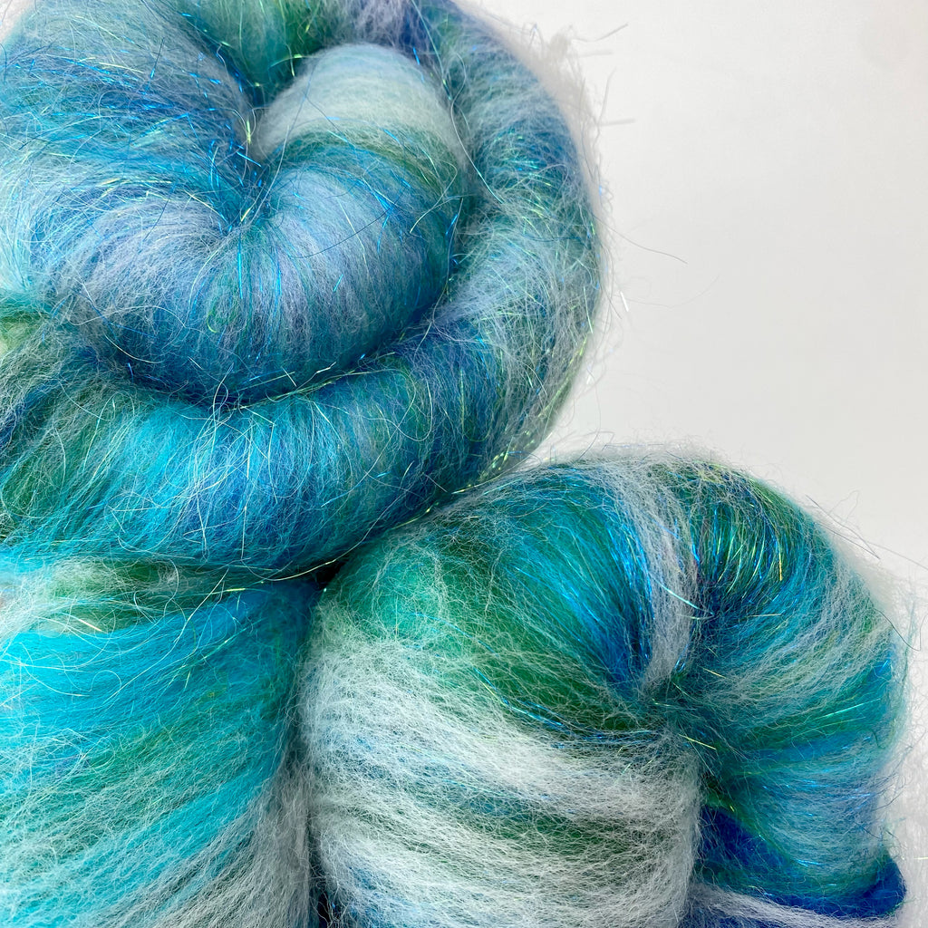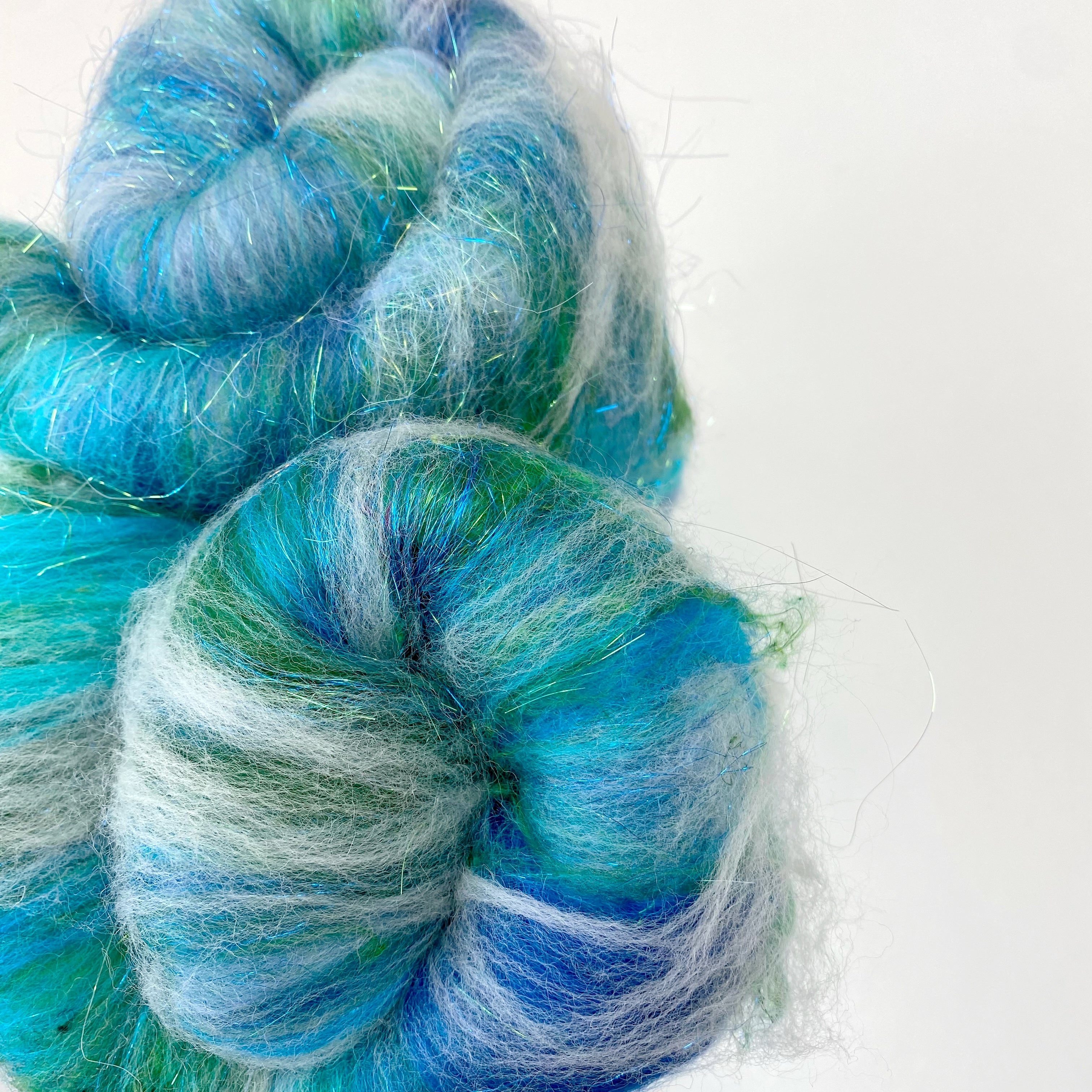 Inspired by the sea this is a 'one off' unique hand carded Batt, made by us at The Gilliangladrag Fluff-a-torium.