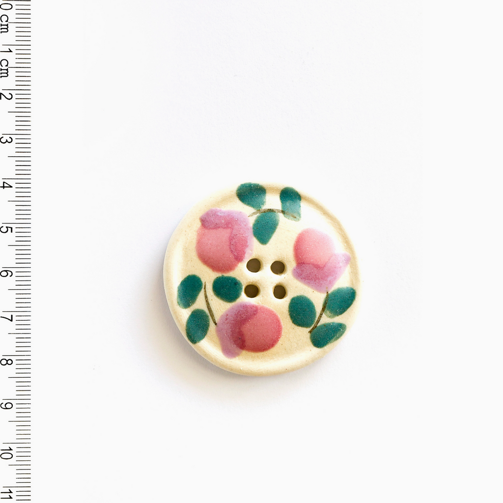 Handmade Ceramic Button : Extra Large Pink Floral Statement Button