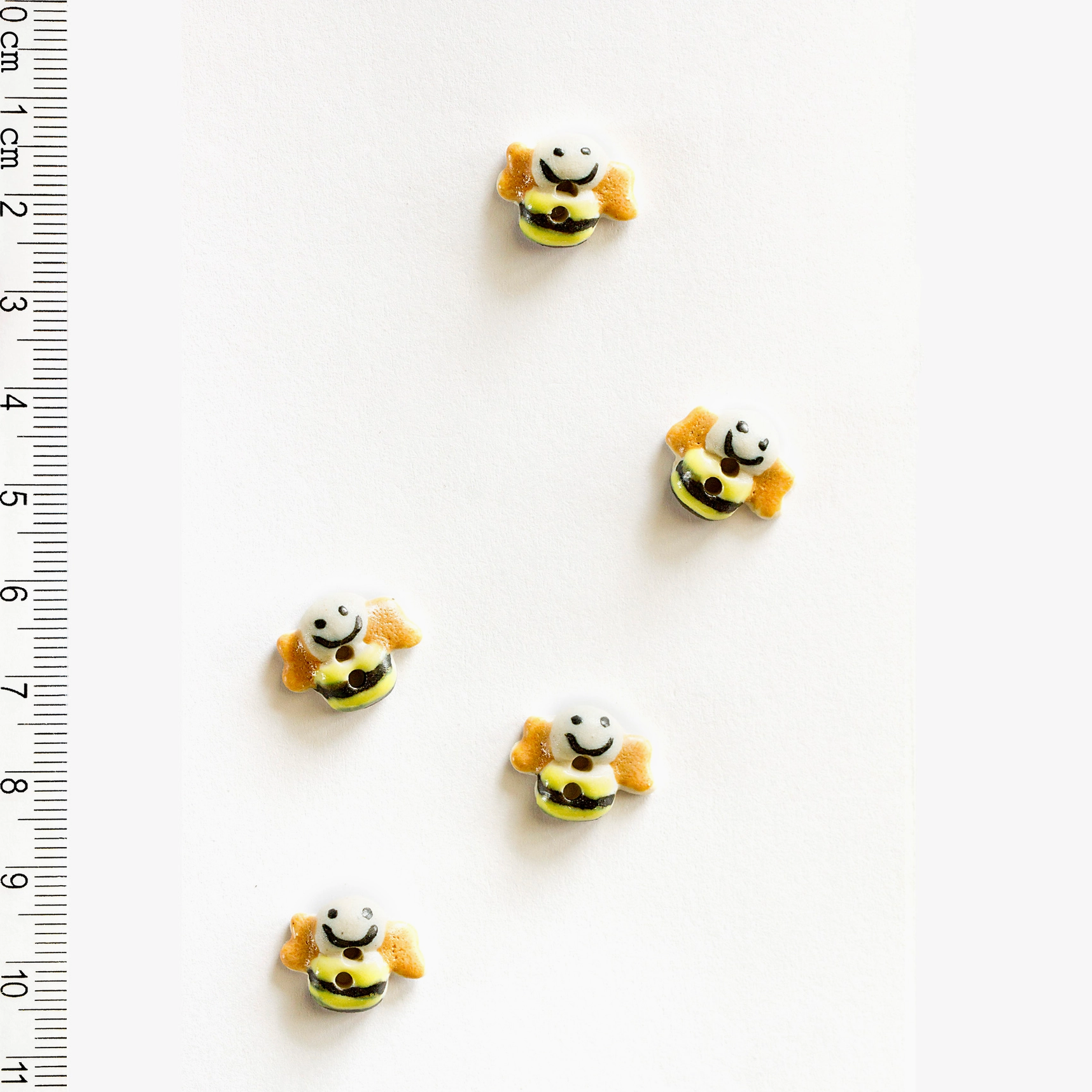 Handmade Ceramic Button Set : 5 x Smiling Bee Sewing Buttons