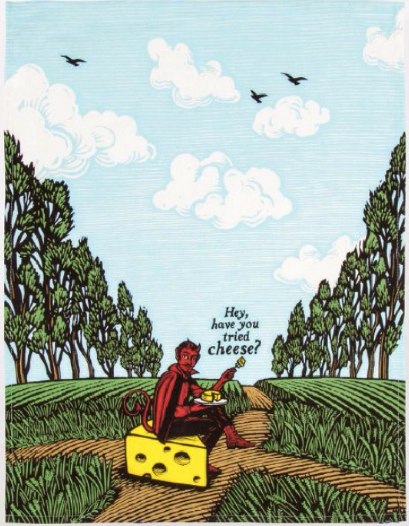 Hey, Have you tried CHEESE? Devil tea towel : The perfect tea towel for cheese lovers! Makes a great cheese themed gift. Maybe with some cheese.