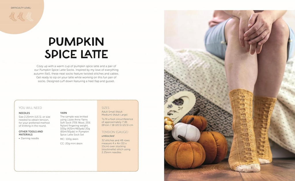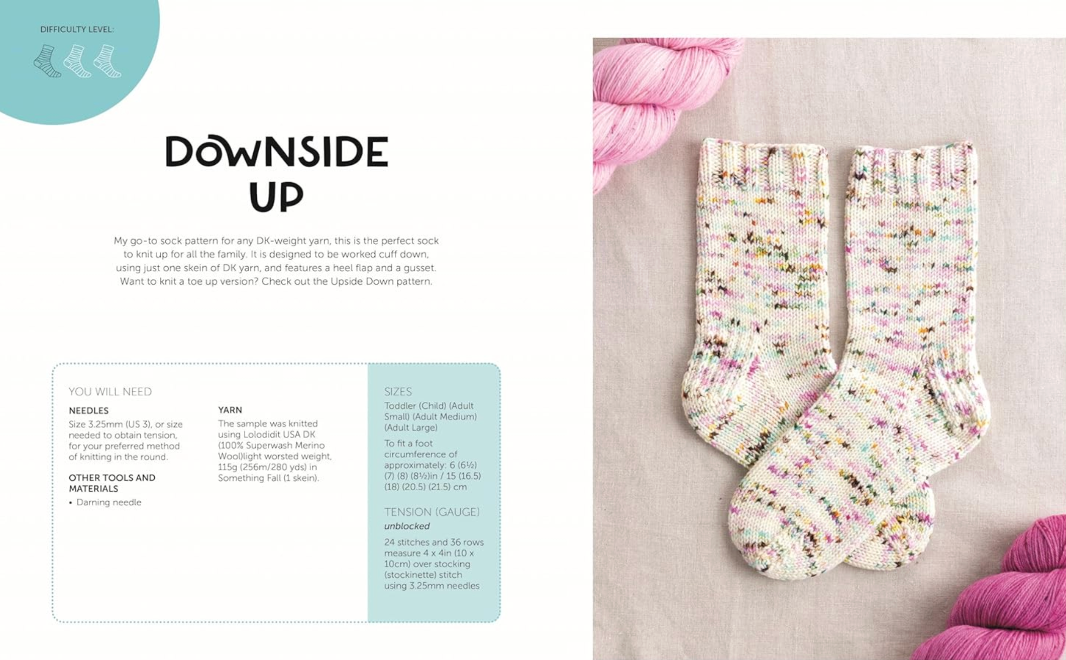 The patterns vary in difficulty from very beginner to more complex so there is lots of choice and plenty to appeal to experienced knitters as well as newbie sock knitters. There are patterns for socks using gradient yarn as well patterns for stranded colorwork designs, textured knits and even cabled designs so you can build your skills and expand your sock knitting know-how while you work your way through the designs. Author and sock fanatic, Julie Lebouthillier, also includes advice on casting on and negative ease as well as a handy guide for sizing down to children's sizes so you can make matching sets for all the family.