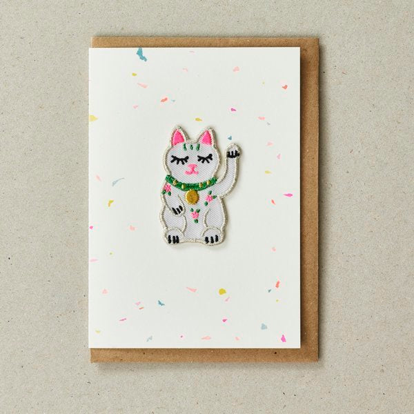 Lucky Waving Cat Patch (Iron On) Greetings Card