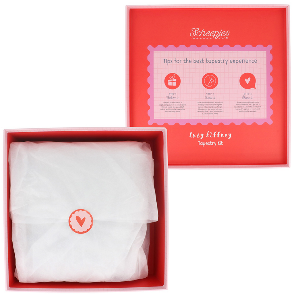 Each Scheepjes Lucy Tiffney tapestry kit comes in a beautifully printed storage box with lid measuring 26 x 26 x 10cm.