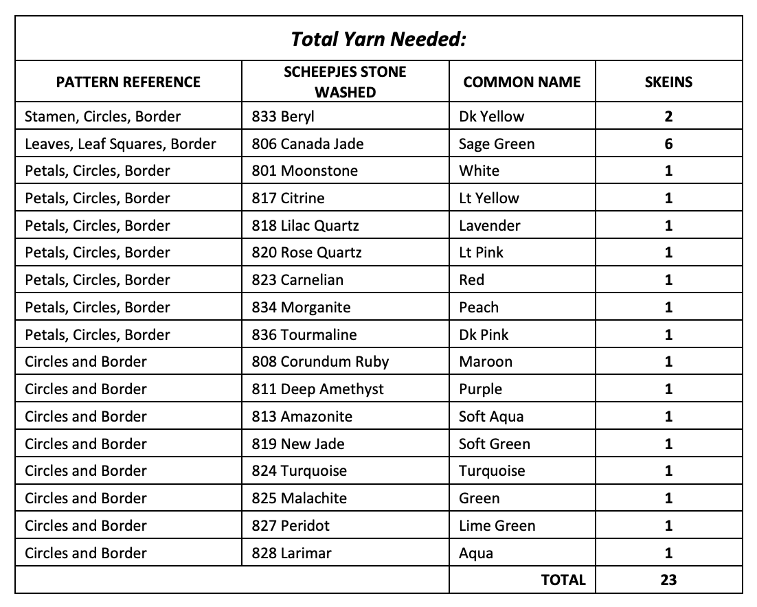 The fabulous Macaroon Blossom Afghan Blanket Crochet Pattern (by Astri Elizabeth) via The Gilliangladrag LYS Ravelry Store. Crocheted using our Scheepjes Stonewashed yarn. There are YouTube Video tutorials detailed in the pattern once you buy it.