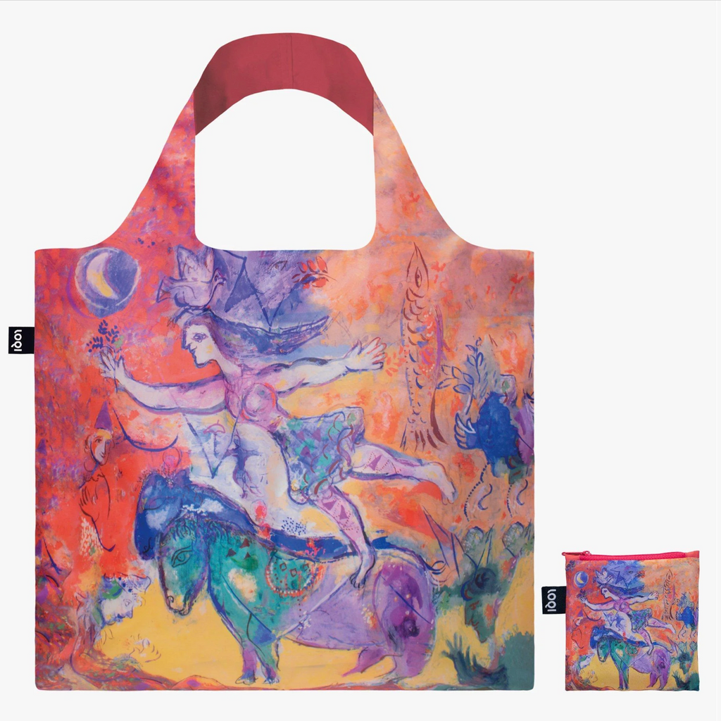 Marc Chagall’s The Circus (1961) immerses us in a dreamlike carnival of colors and forms, where circus performers become whimsical symbols of life's fleeting magic. Through Chagall's vivid hues and surreal compositions on the tote bag, the painting evokes a nostalgic reverie, capturing the ephemeral spectacle of the circus as a metaphor for life's enchanting unpredictability. Blending Cubism, Symbolism, and Fauvism, Chagall celebrates the circus’s vibrant essence and the elusive beauty of its fantastical world. © The Pola Museum of Art / VG Bild-Kunst, Bonn 2024