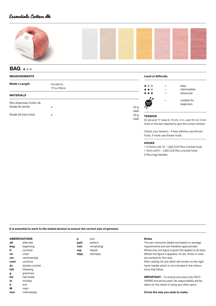 Rico Essentials Cotton Crochet Digital Pattern 729 Bag
