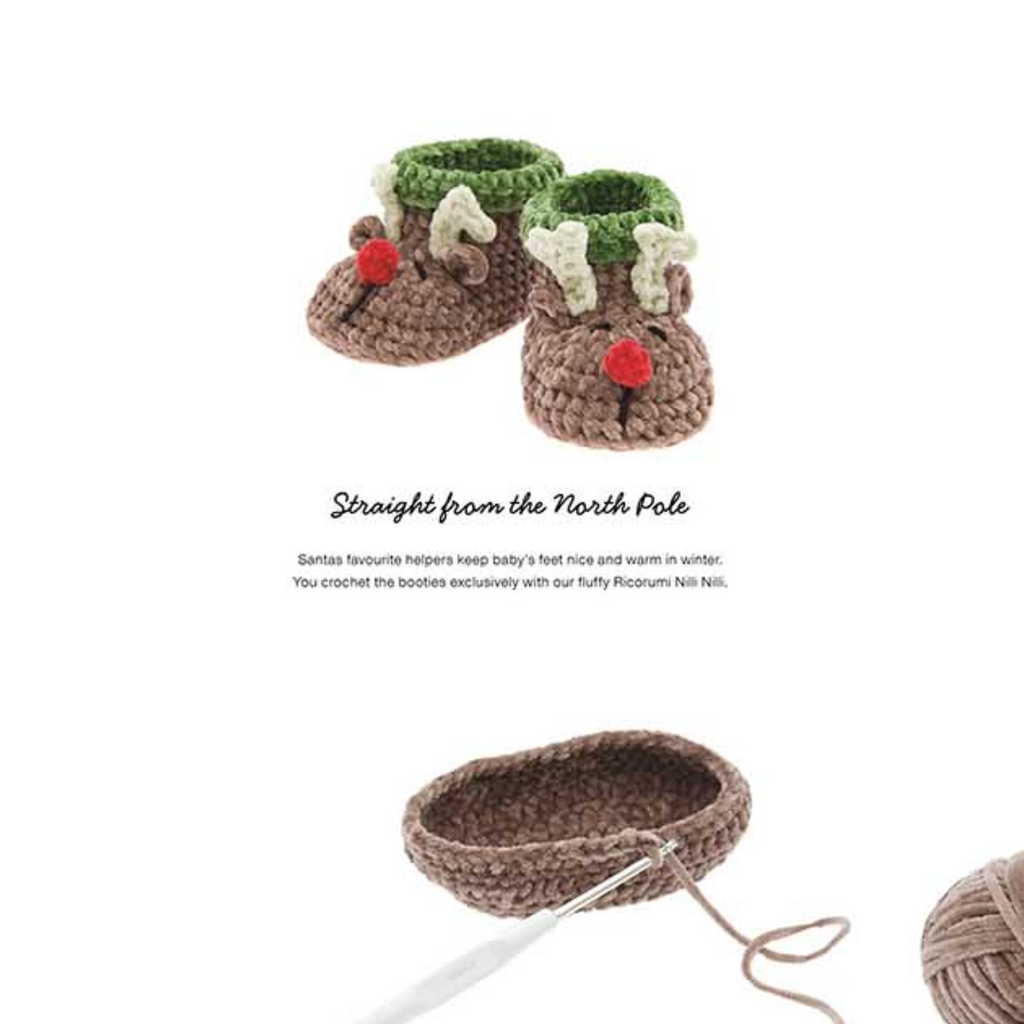 Tiny toes deserve the best! The Ricorumi Baby Booties pattern book brings you the most adorable styles for little feet, with instructions to crochet lots of different adorable booties from the tiny balls of Ricorumi yarn.