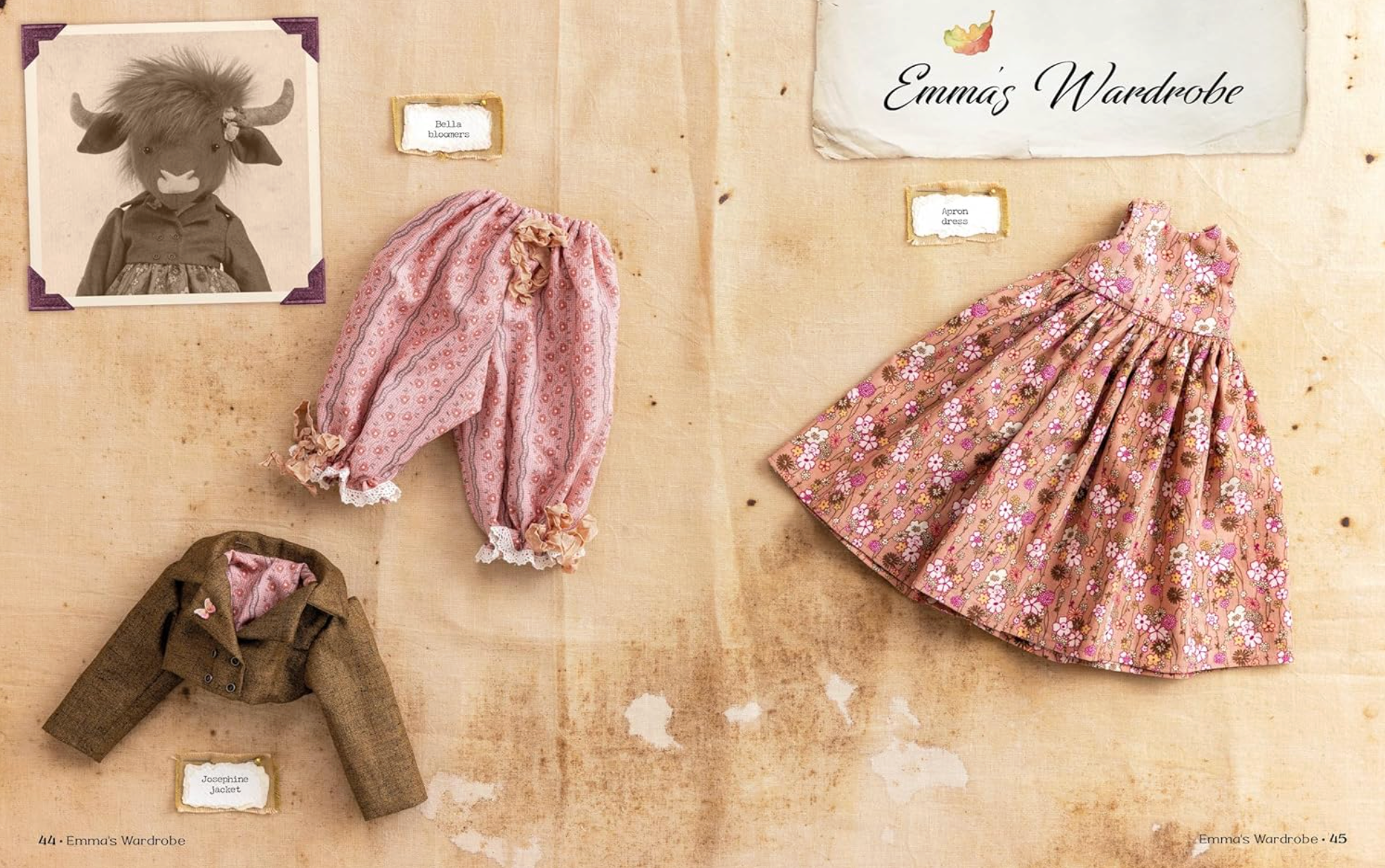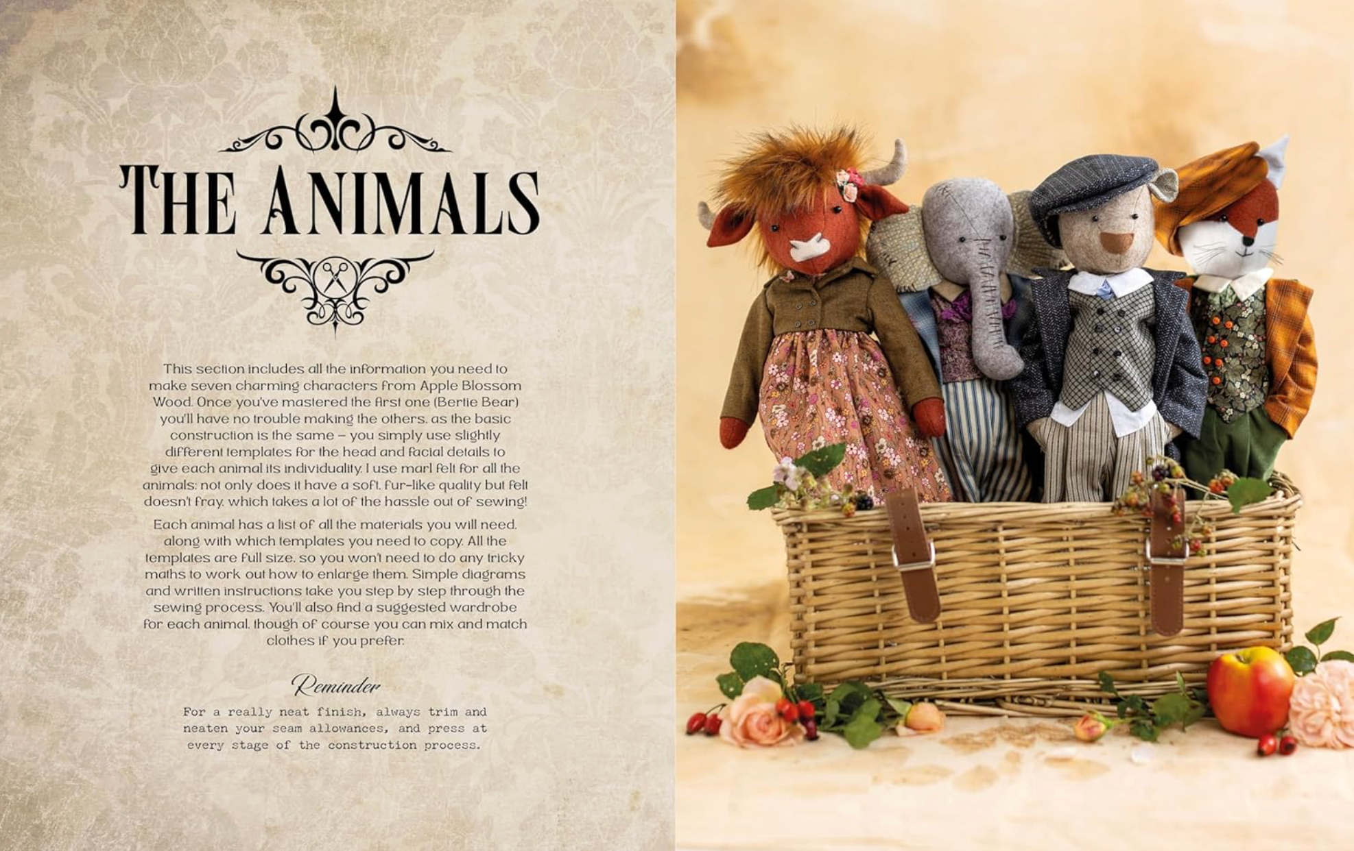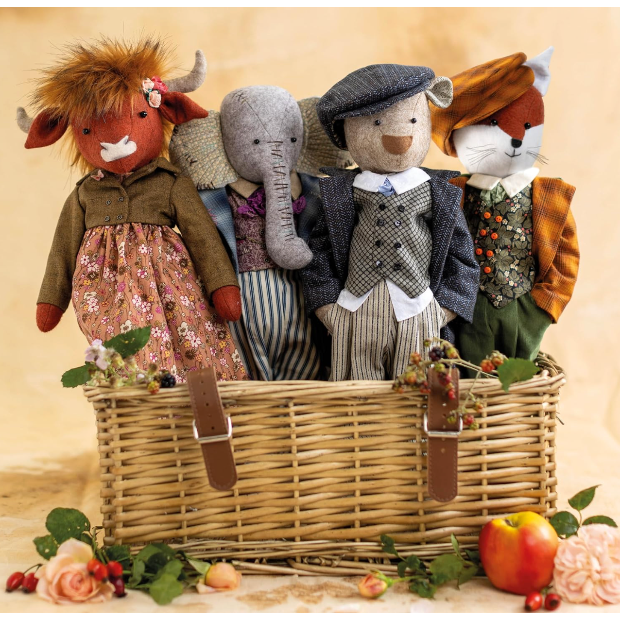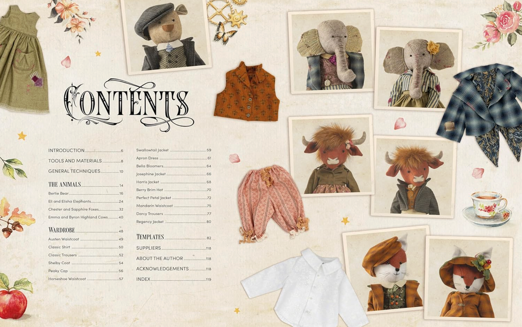 Featuring seven heirloom toy sewing patterns for 16 inch felt animal dolls and their beautifully detailed vintage clothing, all based around the theme of Apple Blossom Wood, the fictional village where they live.