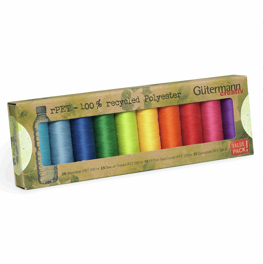 Gutermann Sewing Thread Set : 10 x 100m Recycled Polyester Threads - Brights Assorted