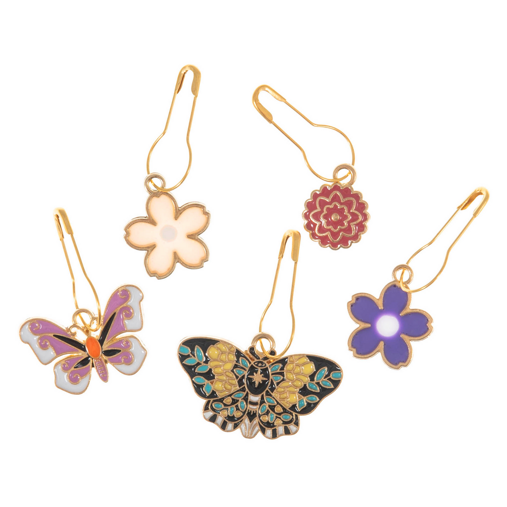 Stitch Markers: Enamelled Metal: 5 Pieces : Butterfly Garden
