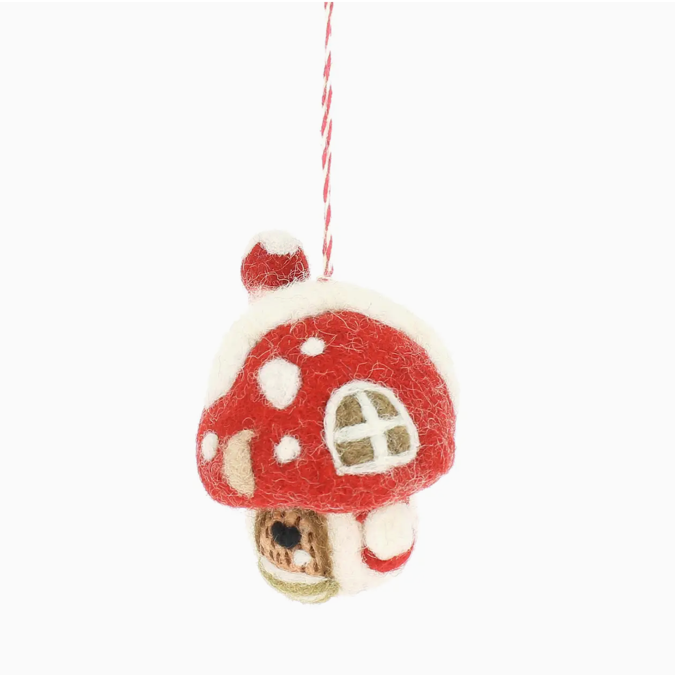 Toadstool Mushroom House : Handmade Biodegradable Felt Hanging Decoration