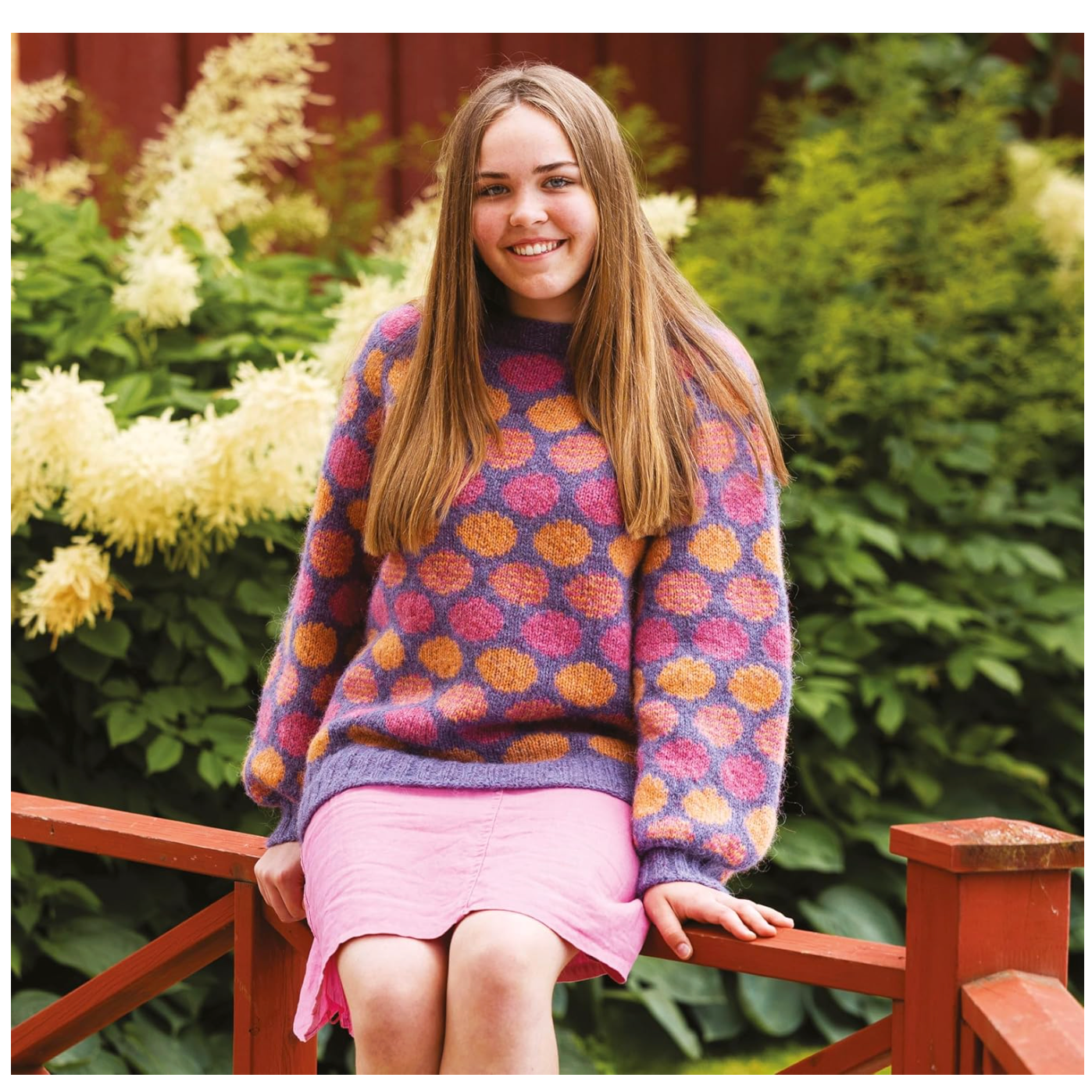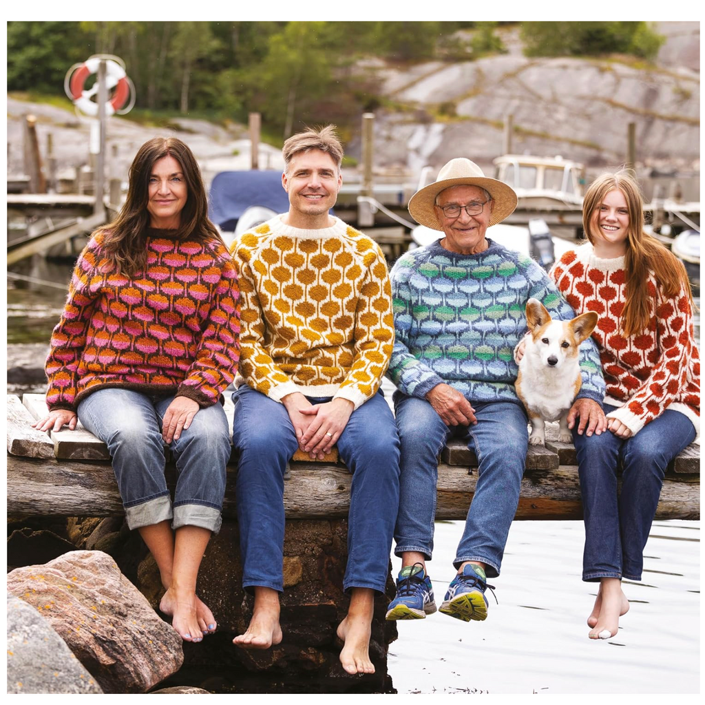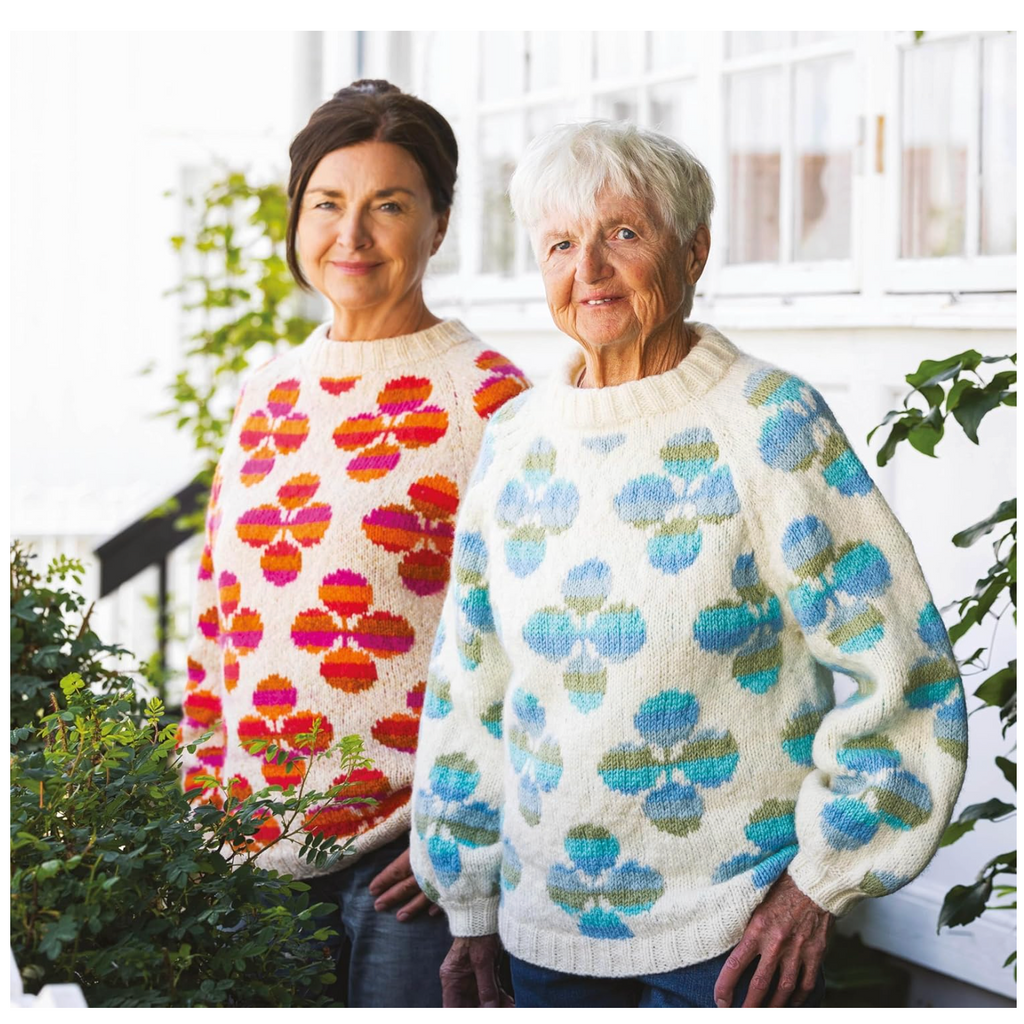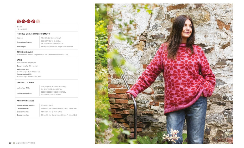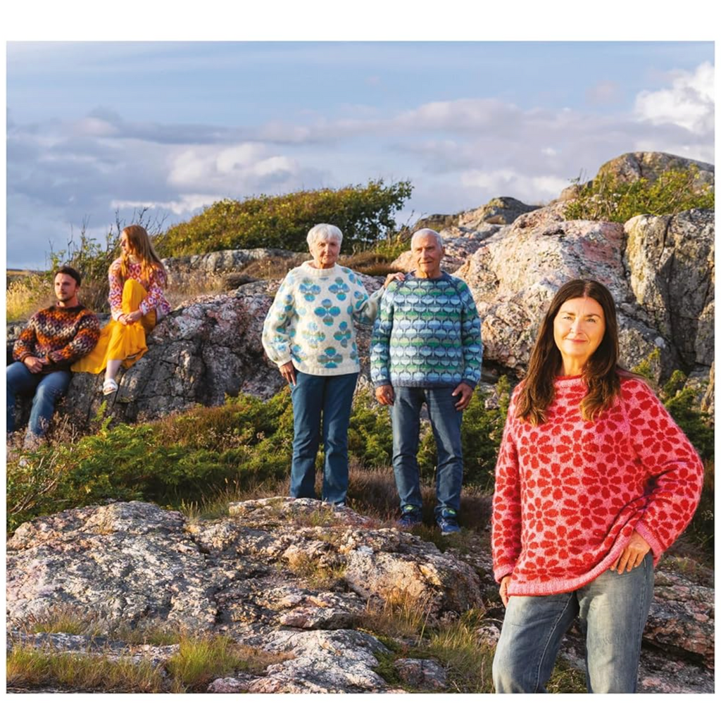 Marita is based in Sweden and as well as knitting she loves to go hiking. This collection of designs has been inspired by nature with its organic shapes and motifs including large flower blooms. The colour choices have also been inspired by the natural world with combinations influenced by the midnight sun in Sweden and midsummer flower meadows.